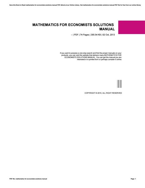 Read MATHEMATICS FOR ECONOMISTS SOLUTIONS MANUAL mobipocket ManyBooks